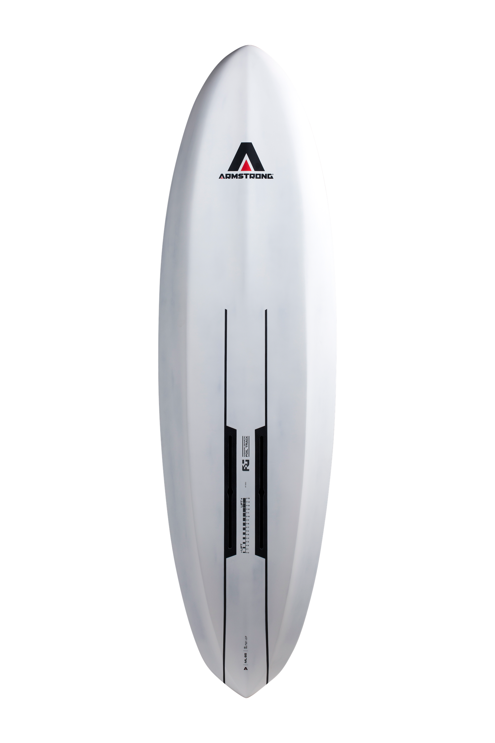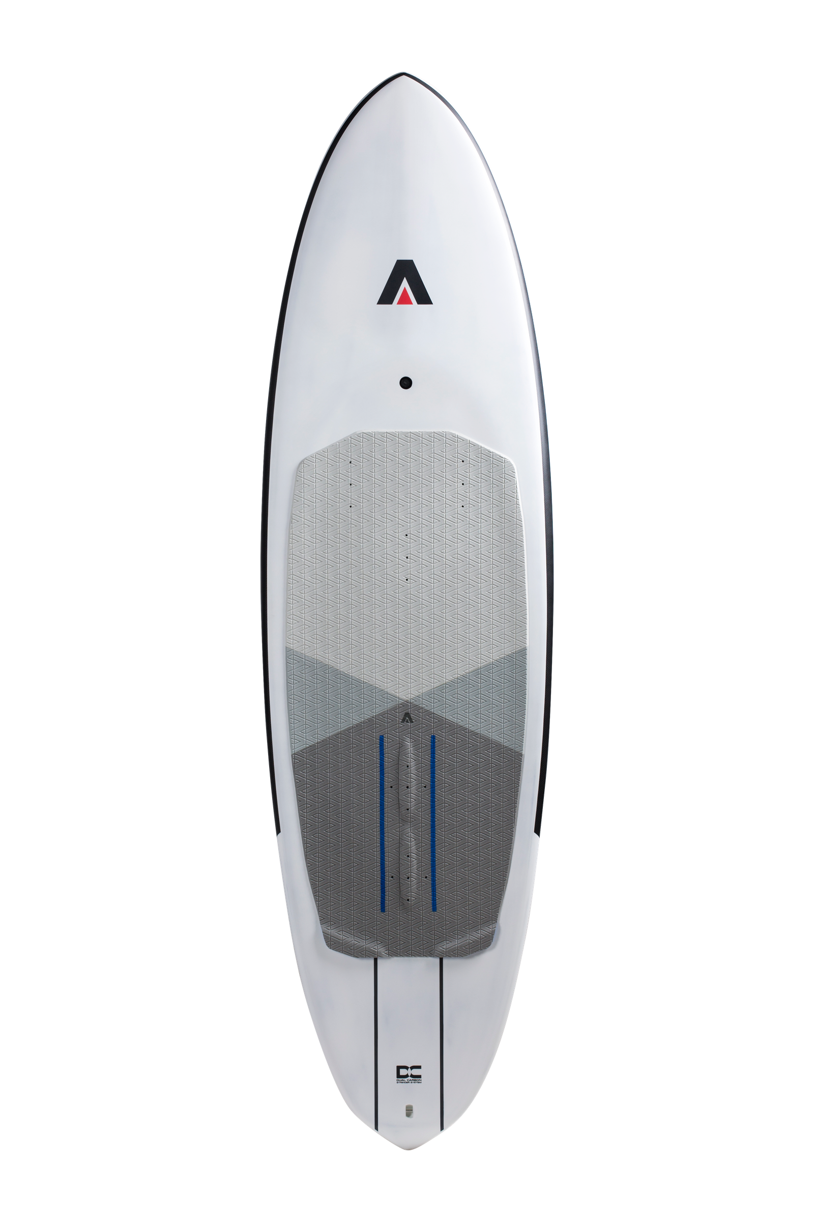 - Bottom: Pulling from the Downwind boards, a subtle double concave at the nose works its way flat at the foil tracks and finally into the diamond-V tail shape for a quick pop up and maximum un-stickiness when touching down. If a board ever wanted to stay in the air, this would be it.